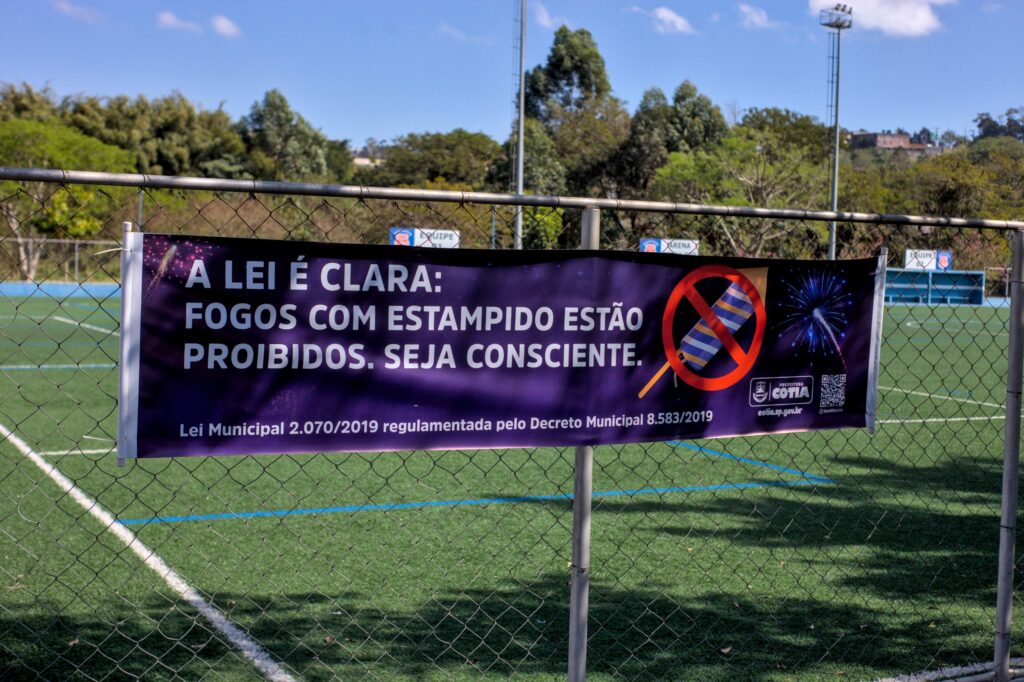 Com uma mensagem rápida, a Prefeitura de Cotia traz uma frase direta: “A lei é clara: fogos com estampido estão proibidos. Seja consciente”. Além das faixas afixadas no entorno de campos, quadras e locais onde acontecem eventos, a ação de conscientização está nos canais oficiais da administração municipal, como redes sociais e portal institucional.