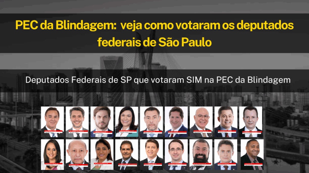 Entre os paulistas, 40 deputados votaram a favor da PEC. O grupo reúne principalmente nomes de partidos como PL, Republicanos, União Brasil, PP, PSD e MDB, além de alguns do PT e PSB.