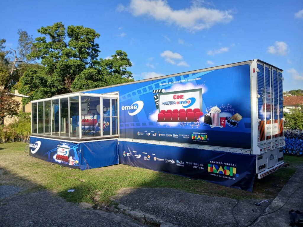 A Carreta do projeto Cine Cultura EMAE – Sessões gratuitas para nossas crianças, trazendo muita diversão e emoção.