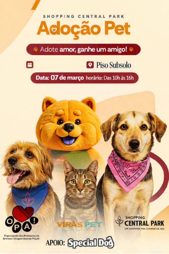 O Shopping Central Park, localizado entre as cidades de Vargem Grande Paulista e Cotia, em parceria com a Vira’s Pet e a Organização dos Protetores Animais (OPA), oferece mais uma oportunidade para clientes darem um novo lar a animais resgatados de situações de vulnerabilidade.