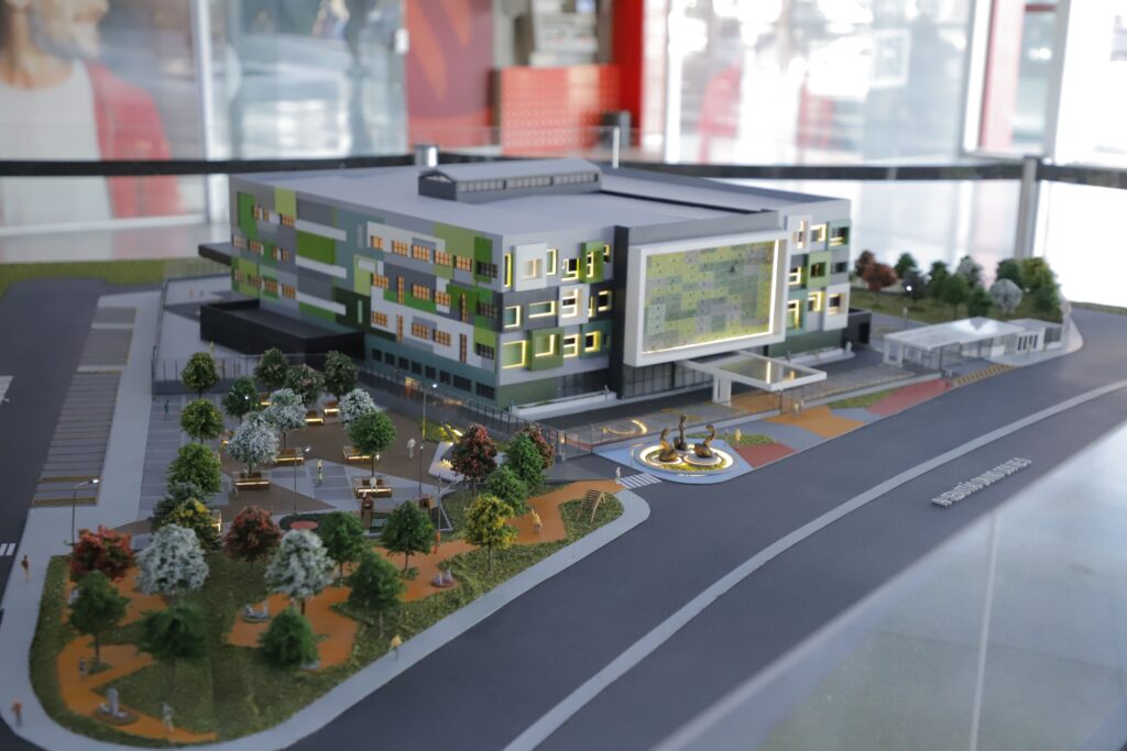 Além da estrutura hospitalar, o entorno do edifício também receberá atenção especial. A praça frontal terá cerca de 2.415 m², equipada com playground; equipamentos de ginástica ao ar livre; bancos, floreiras e pergolados; iluminação, jogos de mesa e áreas de convivência.